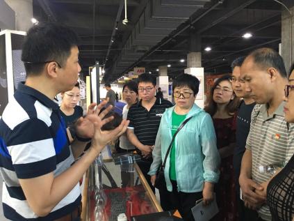 (圖為林彥鋒向考察團介紹展廳的產品)